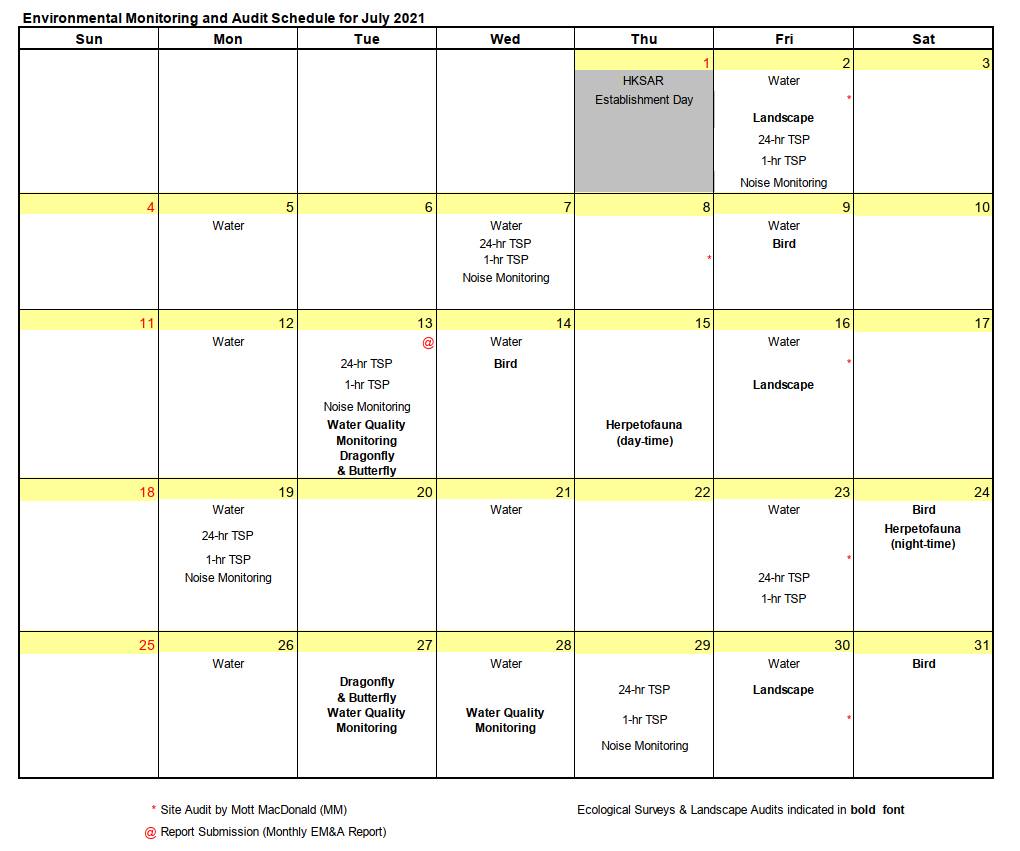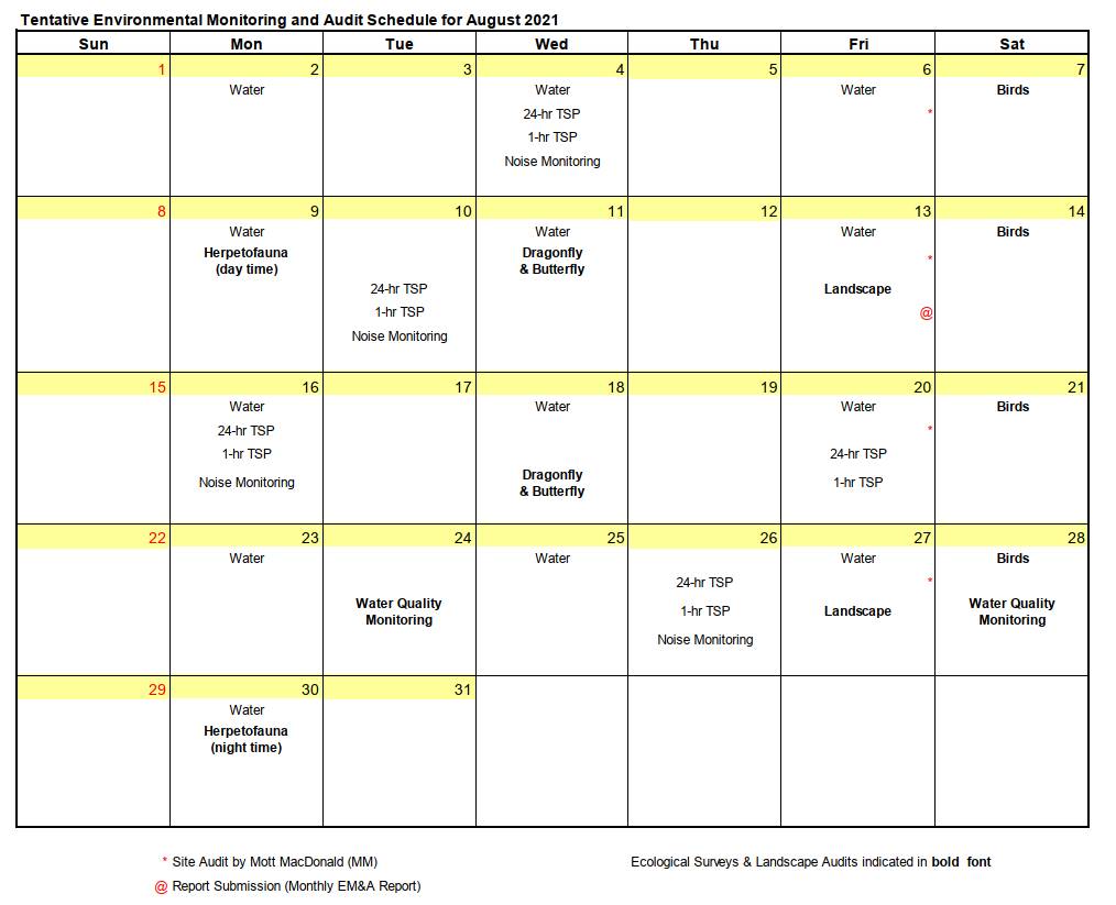 monitoring schedule for August 2021 is shown in the Table