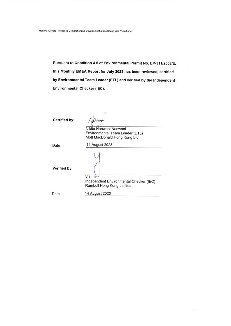 EM&A manual has been undertaken in the reporting month since 12 May 2010.
