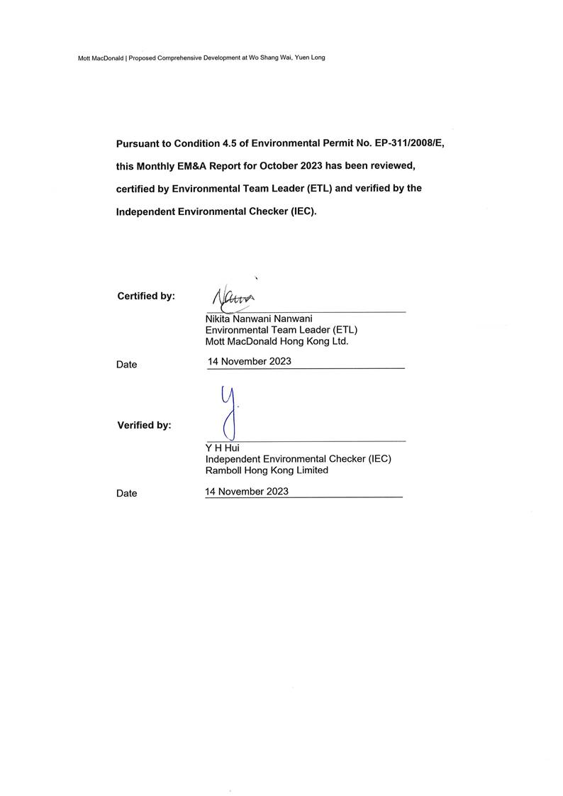 1.4 Summary of EM&A