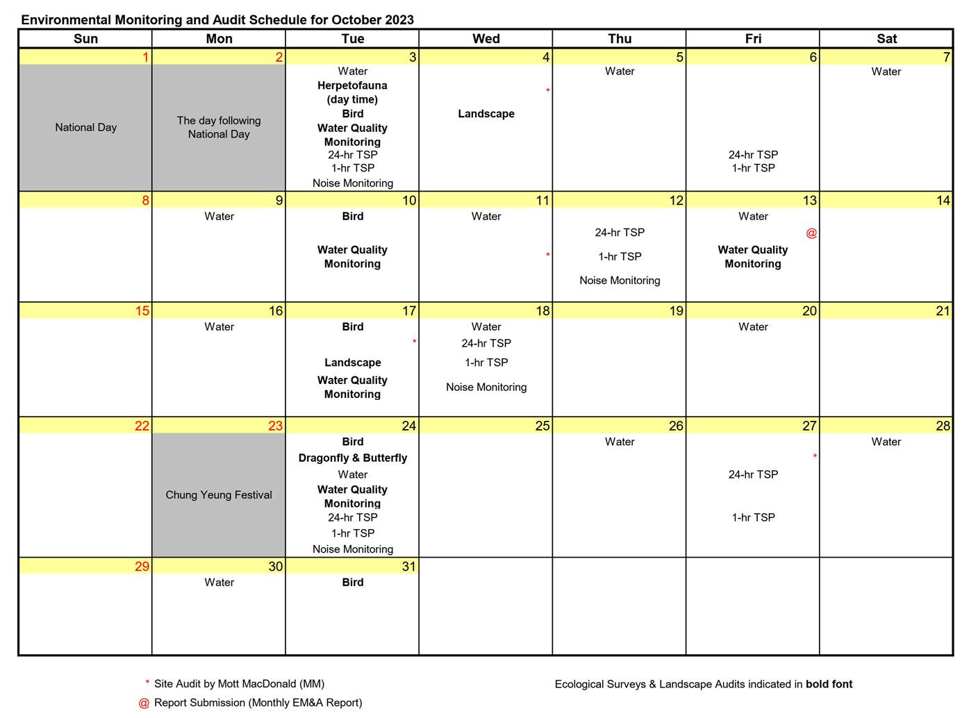 and Audit Schedule for the Reporting Month