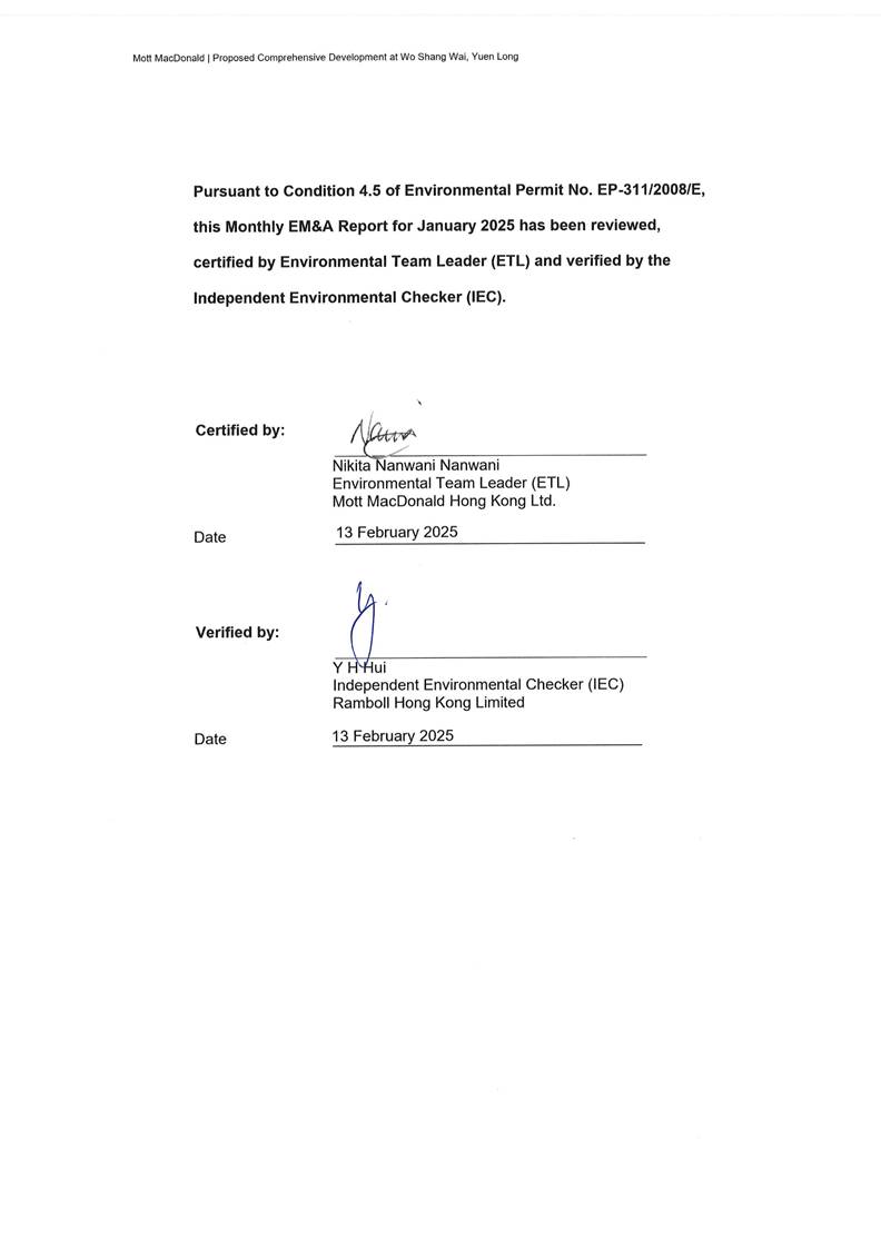 Monitoring of Air Quality, Noise, Water Quality, Ecology and Landscape and Visual impacts due to the Project was under way. In particular, the 1-hr TSP, 24-hr TSP, noise level (as Leq) and water quality parameters (such as pH, DO, turbidity and SS) under monitoring have been checked against established Action and Limit levels.