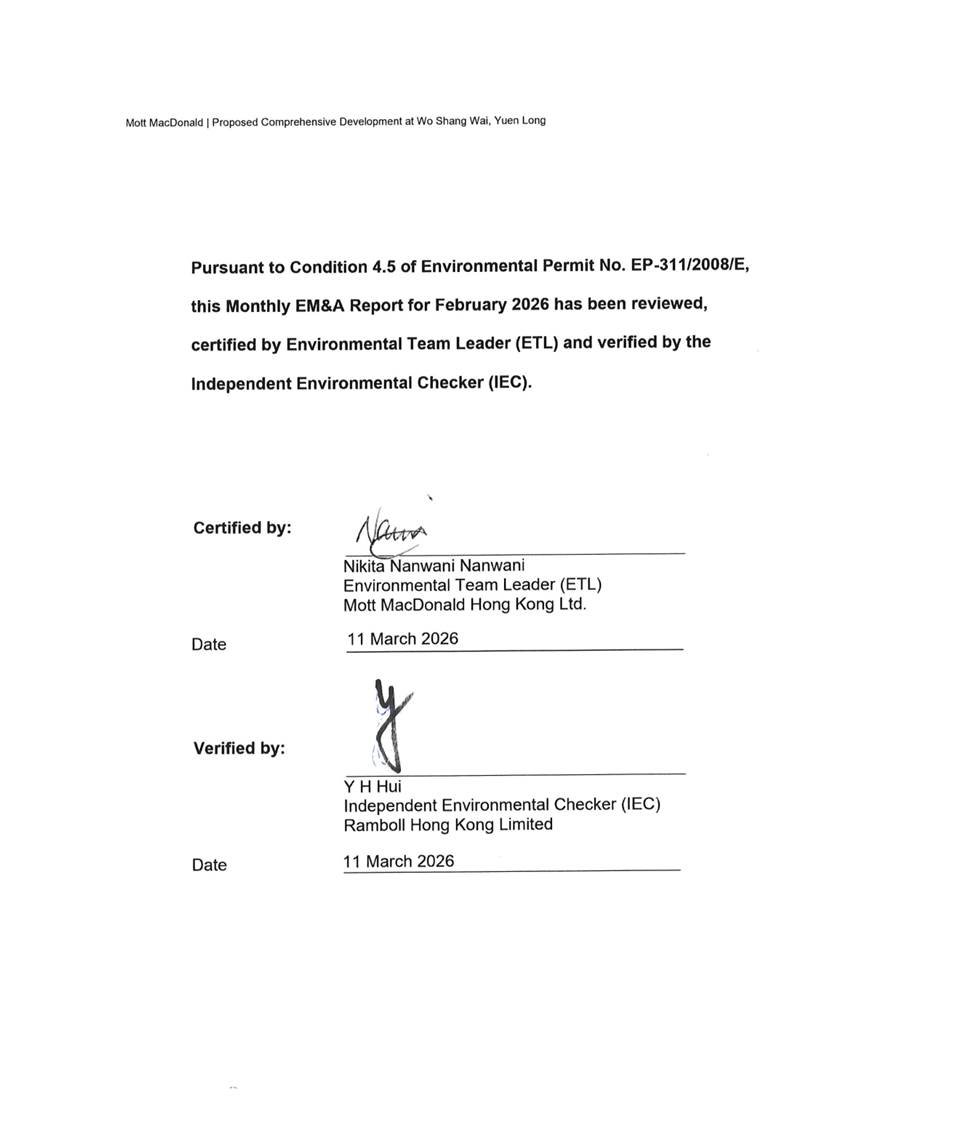 Mott MacDonald Hong Kong Ltd. (“MMHK”) has been commissioned to undertake the Environmental Team (ET) services to carry out environmental monitoring and audit (EM&A) for both pre-construction and construction phases of the Proposed Comprehensive Development at Wo Shang Wai, Yuen Long.