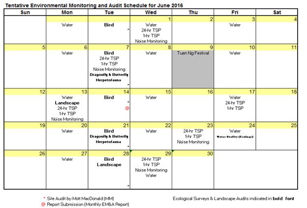 Table 8.1: Tentative Environmental Monitoring and Audit Schedule for the Next Reporting Month