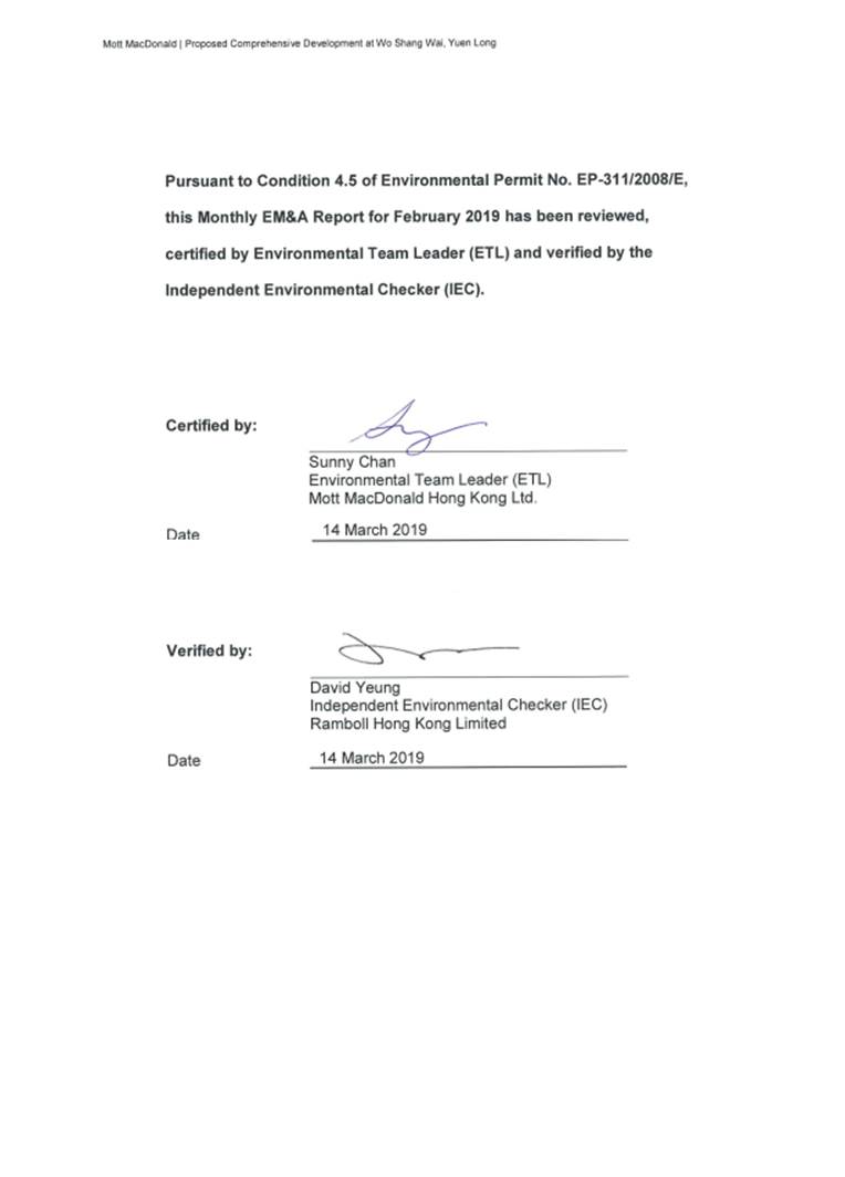According to the EP Condition 4.5, the monthly EM&A Report shall be submitted to the Director within two weeks after the end of the reporting month. This report summarises the findings during the period from 1 to 28 February 2019.