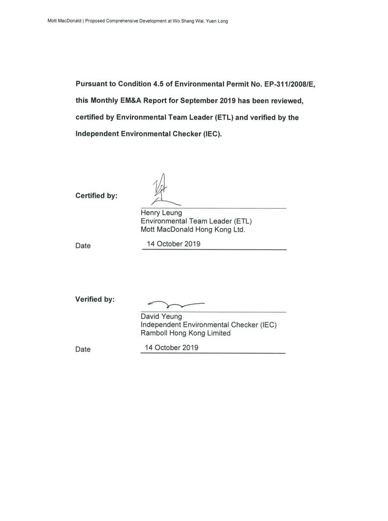 Mott MacDonald Hong Kong Ltd. (MMHK) has been commissioned by the Contractor, Heng Shung Construction Co. Ltd., to undertake the Environmental Team (ET) services to carry out environmental monitoring and audit (EM&A) for both pre-construction and construction phases of the Proposed Comprehensive Development at Wo Shang Wai, Yuen Long. From August 2016, the Project Proponent, Profit Point Enterprises Limited, commissioned MMHK to continue the ET services.