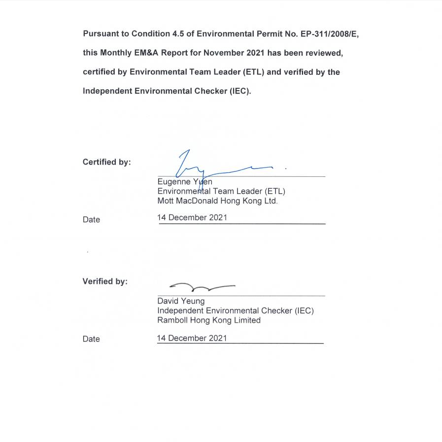 This is the 139th EM&A report submitted under the Condition 4.5 of Environmental Permit No. EP-311/2008/E. This report summarises the findings on EM&A during the period from 1 to 30 November 2021.