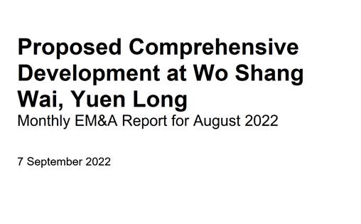Mott MacDonald Hong Kong Ltd. (“MMHK”) has been commissioned to undertake the Environmental Team (ET) services to carry out environmental monitoring and audit (EM&A) for both pre-construction and construction phases of the Proposed Comprehensive Development at Wo Shang Wai, Yuen Long.