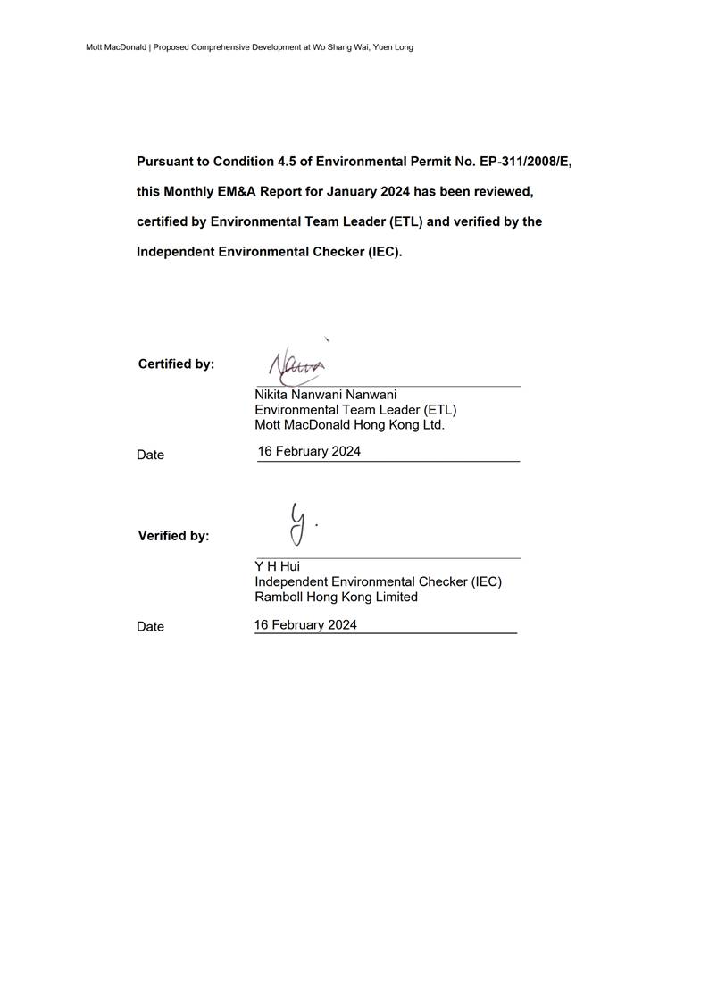 Mott MacDonald Hong Kong Ltd. (“MMHK”) has been commissioned to undertake the Environmental Team (ET) services to carry out environmental monitoring and audit (EM&A) for both pre-construction and construction phases of the Proposed Comprehensive Development at Wo Shang Wai, Yuen Long.